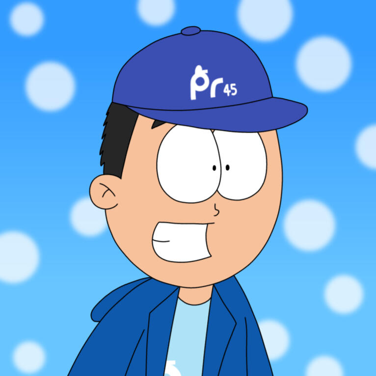 Hello, I'm ThePR45 (former known as PhillipRocks45 and Felipebross), this is my biography, but I'm just a human with a blue cap, i am the founder of Kraking Kap Media, and I am an artist and graphic designer, i went join internet since 2008, and who makes webcomics and logos, have enjoyed!
